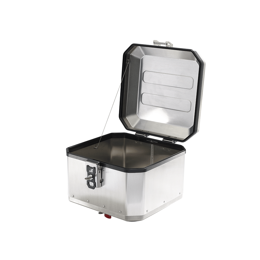 Mytech presenta una nuova linea di bauletti sempre più accattivante e personalizzata. Questa variante grezza della linea MODEL X è realizzata interamente in alluminio, con sgancio rapido.