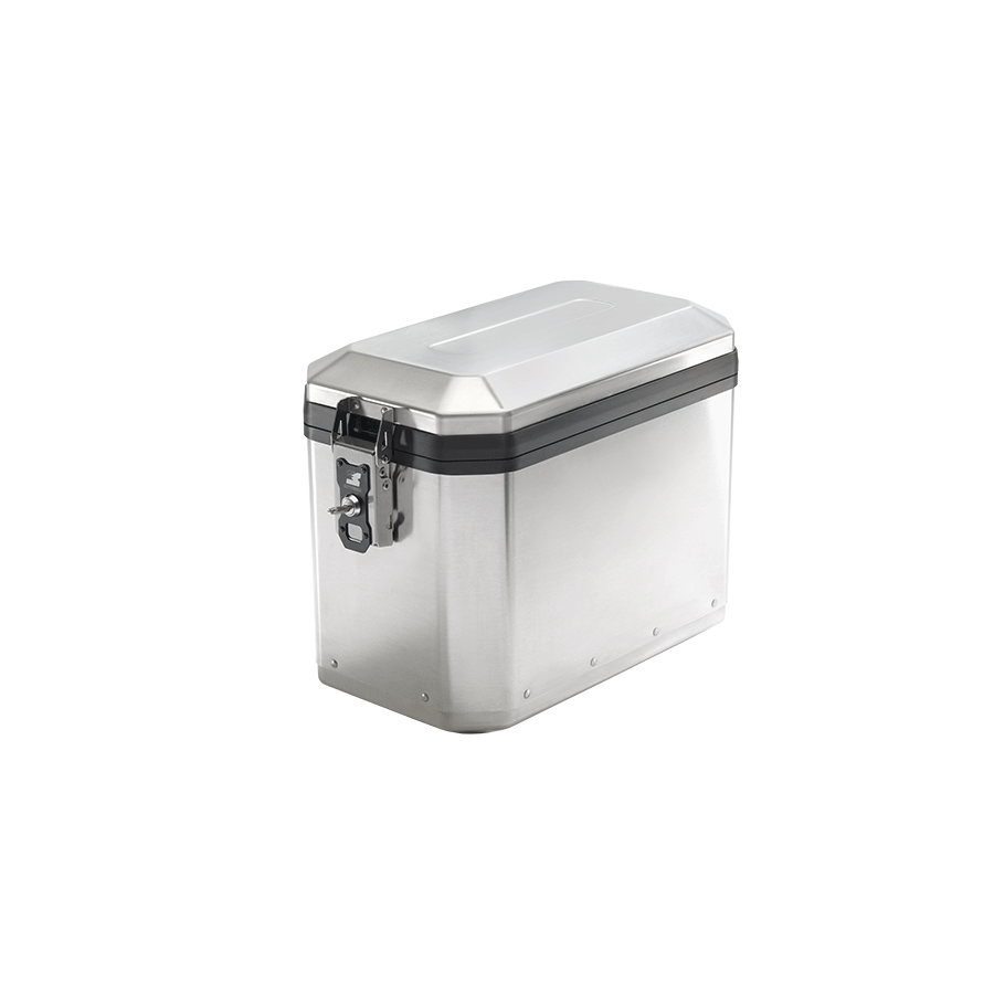 La cerniera di chiusura è realizzata in acciaio dello spessore di 2mm, con cover marchiata in nero. La profilatura lungo la chiusura nasce da un estruso in alluminio, piegato con la sagoma del bauletto del profilo e per migliorare ancora di più la tenuta all’acqua è stata inserita una doppia guarnizione.